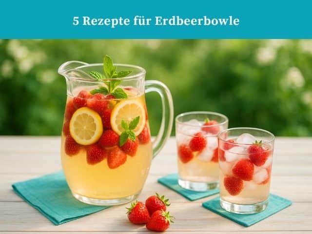 Hier findest du 5 Rezepte dafür. Für alle Varianten gilt: Die Qualität der Erdbeeren entscheidet über das Ergebnis. Reife, aromatische Früchte sorgen für natürlichen Geschmack und eine schöne Farbe. Wichtig ist außerdem etwas Geduld beim Ziehenlassen, damit sich die Aromen gut verbinden können. Die Rezepte lassen sich flexibel abwandeln, etwa durch alkoholfreie Alternativen oder unterschiedliche Weinsorten. So kannst du jede Erdbeerbowle genau auf deine Gäste abstimmen.
