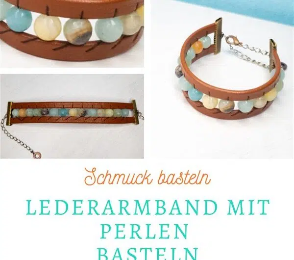 Ein schönes Lederarmband mit Perlen kann man ganz leicht selber basteln. Dieses Armband besticht durch seine schönen Halbedelsteine, in diesem Fall Amazonit-Perlen. Mit dem warmen …