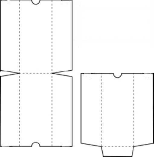Wie schon bei den Schachteln und Tüten gilt auch hier, dass die durchgezogenen Linien geschnitten und die gestrichelten bzw. gepunkteten Linien gefalzt werden.