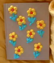 Ruckzuck wird mit Hilfe von Plusterfarben aus einem einfachen Buch aus Recyclingmaterial eine kleine, plastische Blumenwiese.