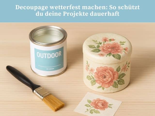 Decoupage wetterfest machen gelingt dir, wenn du wetterfeste Kleber, Outdoor-Lacke und ausreichend Schutzschichten einsetzt. Eine sorgfältige Vorbereitung, ein gleichmäßiger Auftrag und genügend Aushärtungszeit sorgen dafür, dass deine Motive auch draußen schön bleiben. Ergänzende Grundlagen zur Technik findest du im Artikel „Was ist Decoupage?“, während „Kleber und Lacke für Decoupage“ dir zeigt, welche Produkte sich für unterschiedliche Projekte eignen. Ergänzende Grundlagen zu Papier, Vorbereitung und Techniken findest du gesammelt im Decoupage Basiswissen.