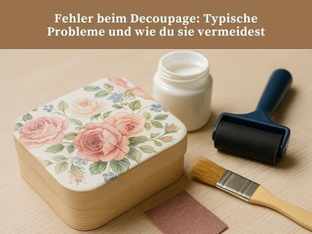 Viele Fehler beim Decoupage lassen sich mit einem ruhigen Arbeitsablauf und den passenden Materialien vermeiden. Eine sorgfältige Vorbereitung, dünne Kleber- und Lackschichten sowie eine bewusste Motivwahl helfen dir, glatte und harmonische Ergebnisse zu erzielen. Weitere Grundlagen findest du im Artikel „Was ist Decoupage?“, und im Beitrag „Werkzeuge für Decoupage“ erfährst du, welche Hilfsmittel dir das Arbeiten erleichtern. Noch mehr Grundlagen zu Papierarten, Werkzeugen und decoupage-typischen Techniken findest du im Decoupage Basiswissen. Eine Upcycling-Bastelidee gibt es im Artikel Cappuccino-Dose upcyceln: Nostalgisches Decoupage-Projekt mit Vintage-Effekt auf Upcycling-Basteln.de.