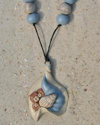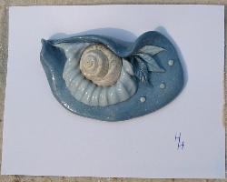 Hedwig bastelt gerne mit unterschiedlichen Materialien, aber am liebsten modelliert sie mit Fimo. Dieses Material fasziniert sie schon seit vielen Jahren und so ist es nicht verwunderlich, dass sie auch Muscheln, Schneckenhäuser usw. in Fimo einarbeitet.