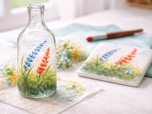 Wenn du mit Glas- oder Porzellanmalfarben arbeitest, lohnt es sich, auf backofenfixierbare Farben zu achten. Sie sorgen dafür, dass dein Motiv nach dem Einbrennen dauerhaft hält und wischfest wird. Gerade bei dekorierten Flaschen oder Kacheln ist das wichtig, damit die Oberfläche stabil bleibt. Wie das Fixieren genau funktioniert und worauf du dabei achten solltest, sowie weitere Tipps und Tricks findest du in meinem Beitrag zur Porzellan- und Glasmalerei mit backofenfixierbaren Farben.