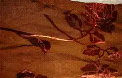 - Rosentuch aufspannen und nach Motiven die Farben aufmalen. Darauf achten, daß möglichst nass in nass gemalt wird, damit nicht zu viele Trockenränder entstehen.
