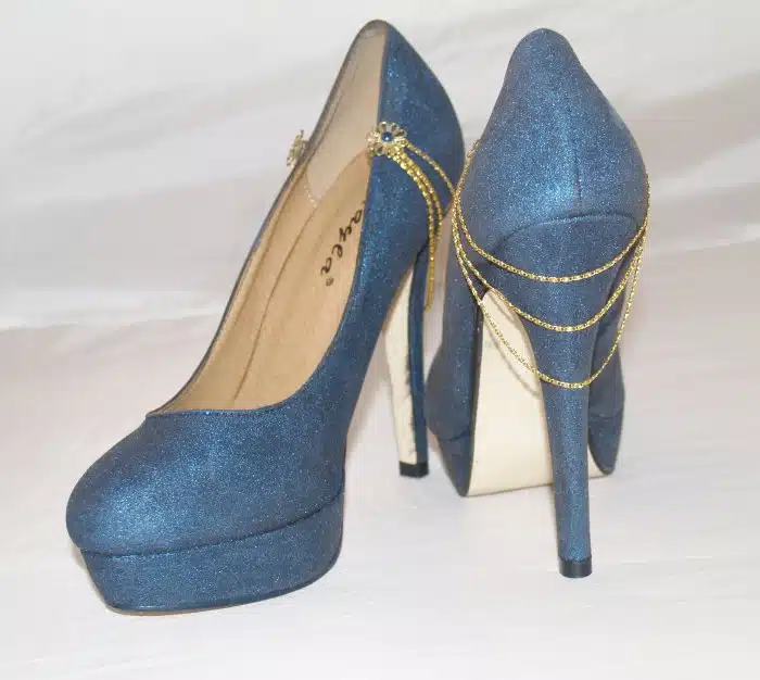 Die einen benutzen Embellishments aus Metall für’s Karten basteln, die anderen basteln Schmuck damit und was macht meine Tochter? Genau – Schuhe pimpen… Der Vorteil bei dieser Art Schuhe zu verschönern ist übrigens u.a., dass die verwendeten Metallelemente extrem preisgünstig sind und man so für wenig Geld einen tollen Effekt bekommt.