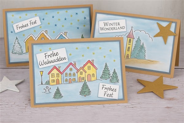 Weihnachtskarten stempeln – Karten mit Winterdörfern