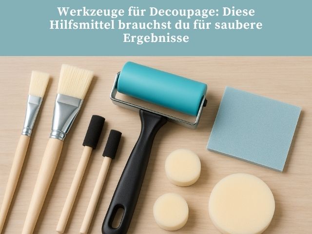 Wenn du die passenden Werkzeuge für Decoupage nutzt, wirst du schnell merken, wie viel ruhiger und gleichmäßiger deine Ergebnisse aussehen. Weiche Pinsel, Roller, Schwämmchen und feines Schleifpapier gehören zu einer gut ausgestatteten Grundausrüstung. Sie erleichtern dir das Aufbringen von Decoupagepapier und unterstützen dich dabei, saubere Kanten und glatte Lackschichten zu erzielen. Noch mehr Grundlagen findest du im Artikel „Was ist Decoupage?“. Wenn du zusätzlich mehr über Papierarten, Vorbereitung und grundlegende Techniken erfahren willst, hilft dir das Decoupage Basiswissen weiter.